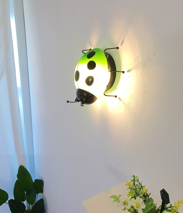 무당벌레를 캐릭터화 한 귀여운 벽등 / 그린, 옐로우 품절